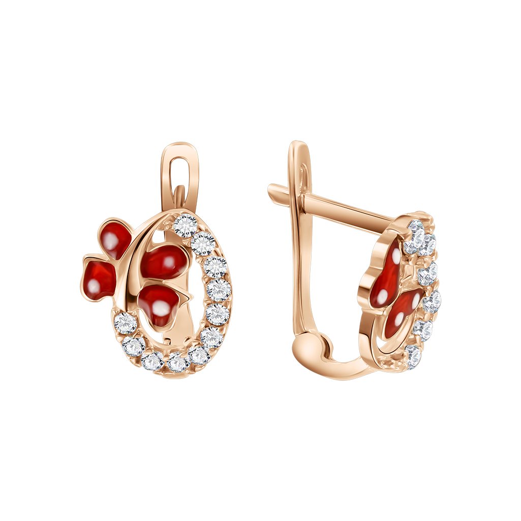 Charming earrings butterflies, red gold 585, with zirconia and enamel, height approx. 9 mm.