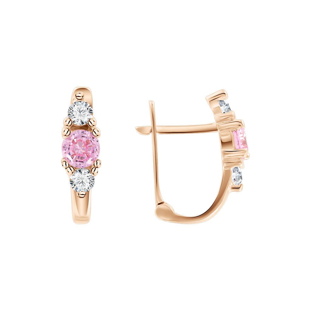 Lovely earrings, red gold 585, with zirconia, height about 14 mm.