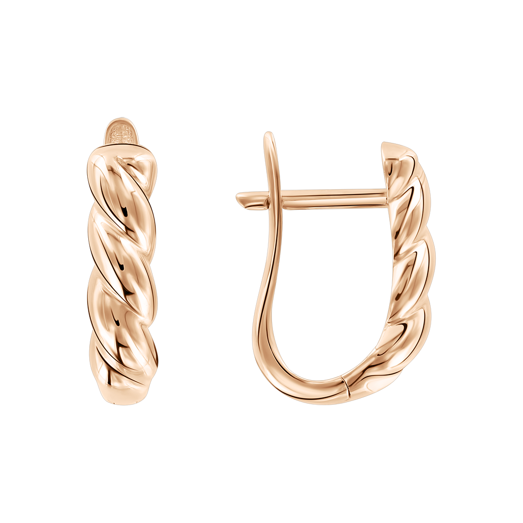 Stylish earrings crafted from Russian 585 red gold, height approx. 15 mm