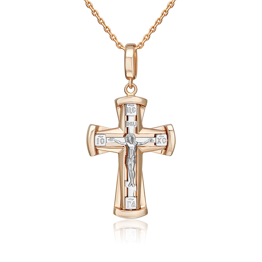 Pendant cross, Russian red/white gold 585, height approx. 38 mm
